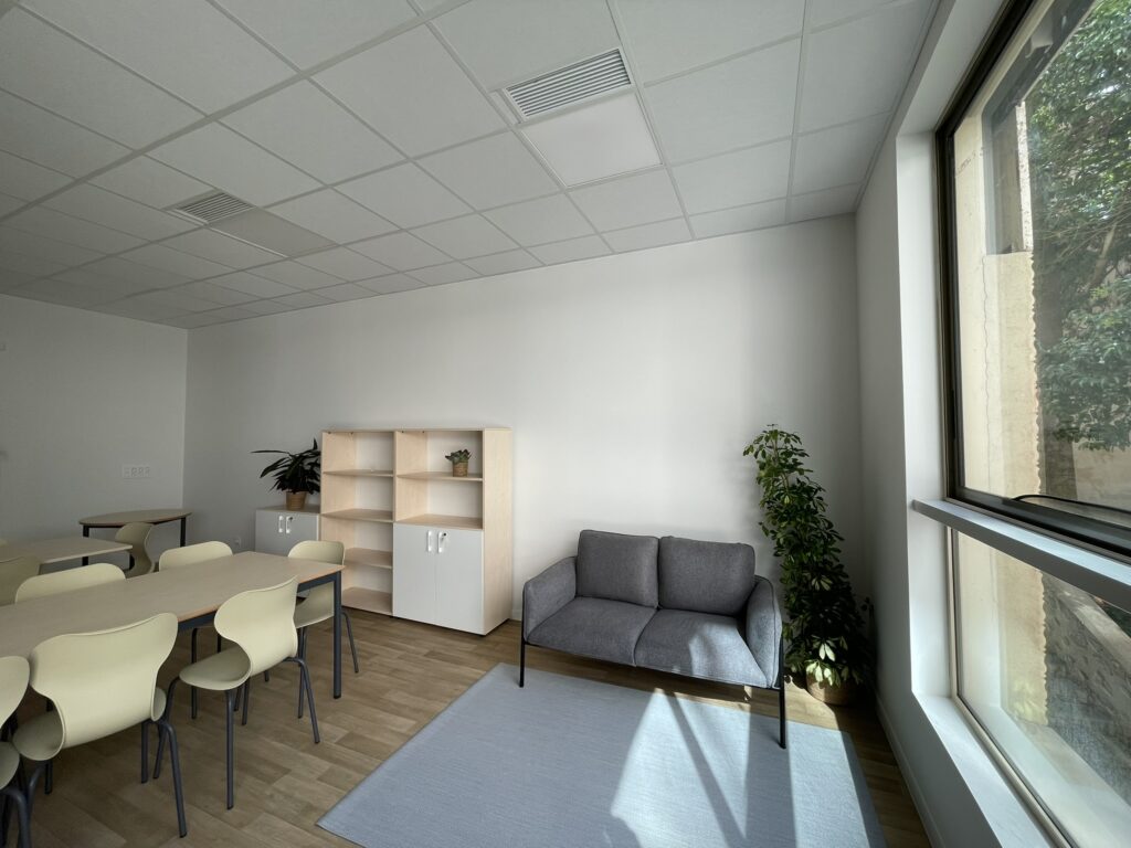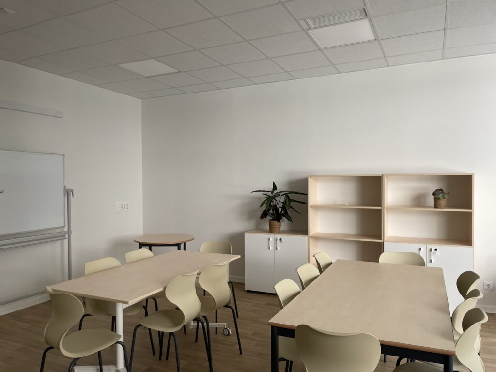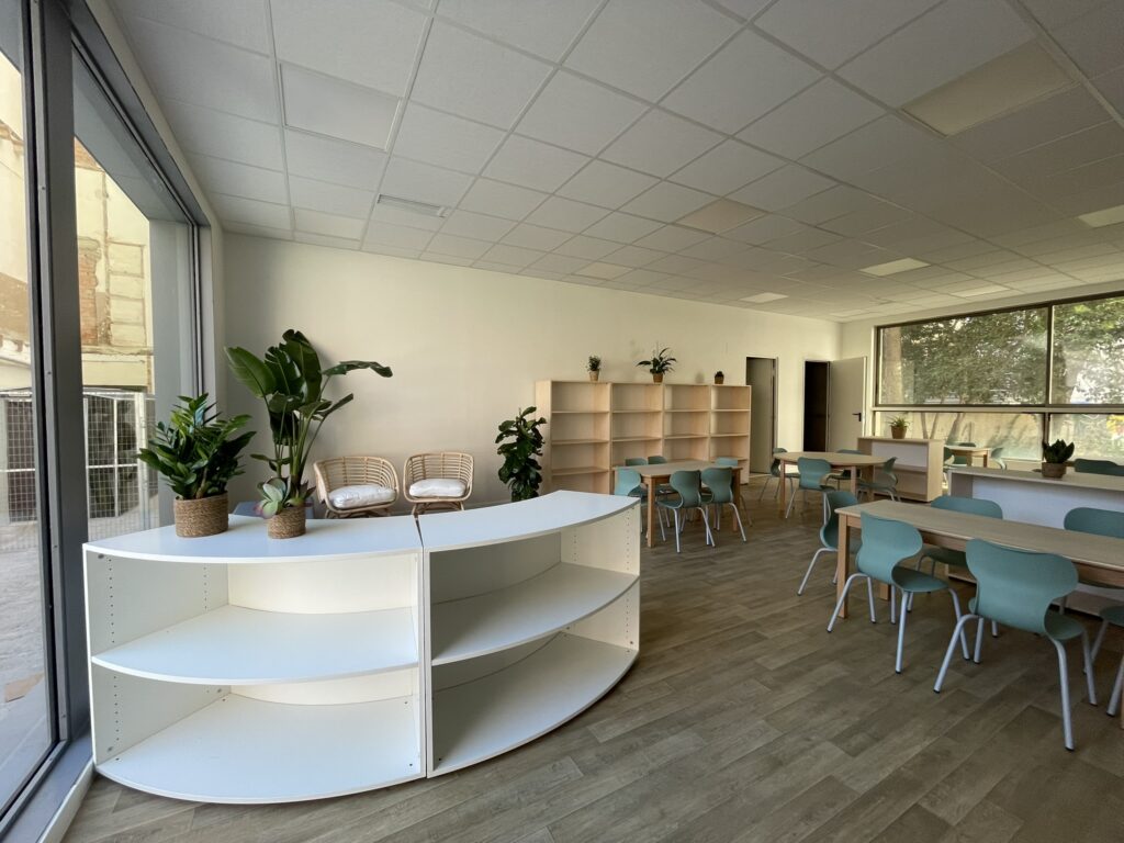 La intervención partía de un local en estado completamente bruto, sin instalaciones ni acabados, y lo ha convertido en un conjunto de aulas y espacios de estudio diseñados para favorecer el aprendizaje y la convivencia. Grandes aperturas hacia el patio y el entorno urbano aportan luz natural y una conexión visual con la vida escolar, mientras que el nuevo acceso adaptado facilita la circulación y garantiza la accesibilidad universal.